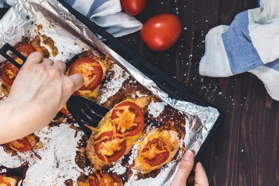 Liek uzsildītā cepeškrāsnī uz 180 grādiem un cep 40 minūtes. Piecas minūtes pirms gatavošanas beigām apkaisa ar rīvētu sieru. Ēdiens sanāks ļoti garšīgs.