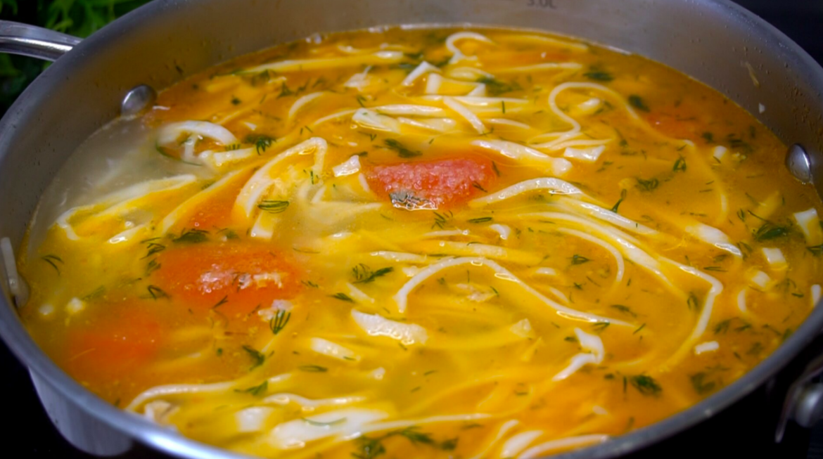 Šodien vēlos padalīties ar recepti zupai ar nūdelēm. Pirmo reizi izmēģinot šo zupu kafejnīcā, uzreiz sapratu, ar ko tā atšķiras no ierastās vistas nūdeļu zupas. Šī zupa tiek pagatavota, pievienojot tomātu, kas garšai piešķir svaigumu un vieglu skābumu. Nūdeles labāk gatavot mājās, jo īpaši tāpēc, ka tās ir viegli pagatavojamas. Padalīšos ar recepti nūdelēm, kas gatavajā zupā neuzbriest pat nākamajā dienā.